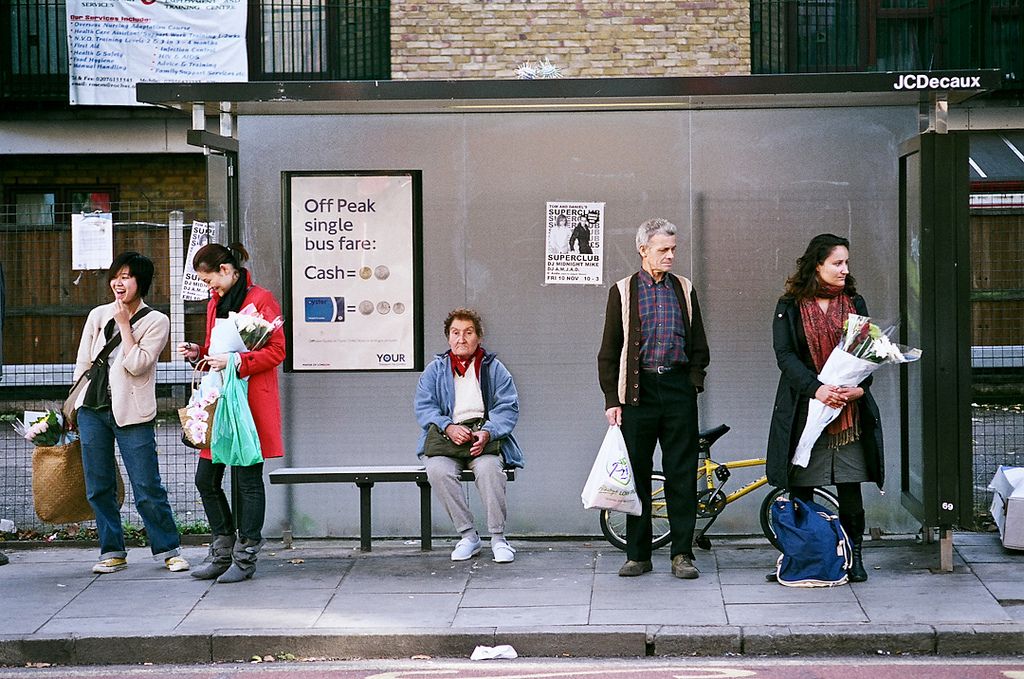 There is a unique stillness found at a city bus stop. It is one of the few places in modern